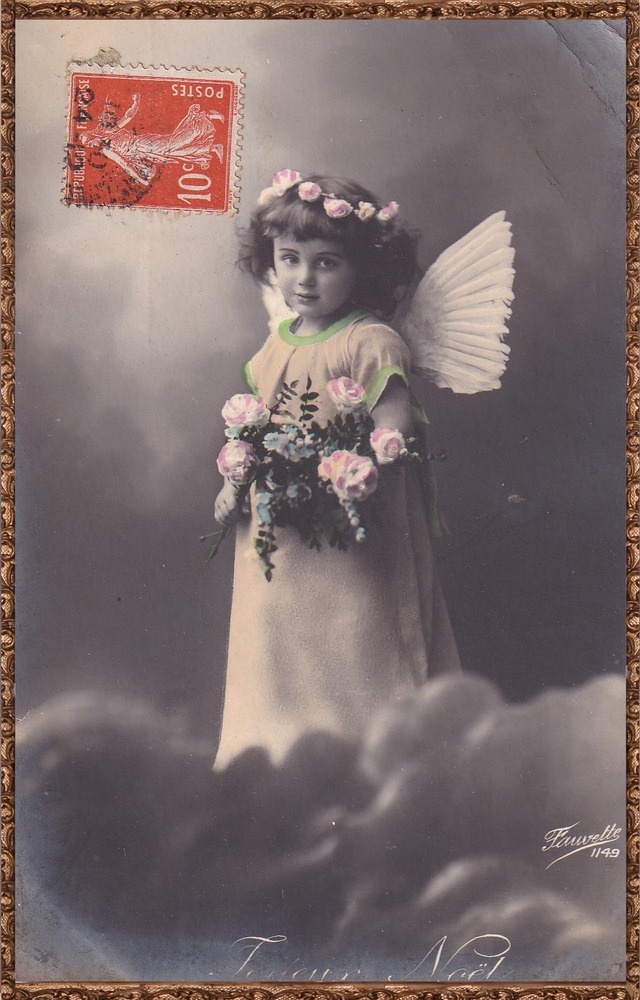 *Antique postcard クリスマスに舞い降りた可愛らしい天使 1911年 FRANCE P259