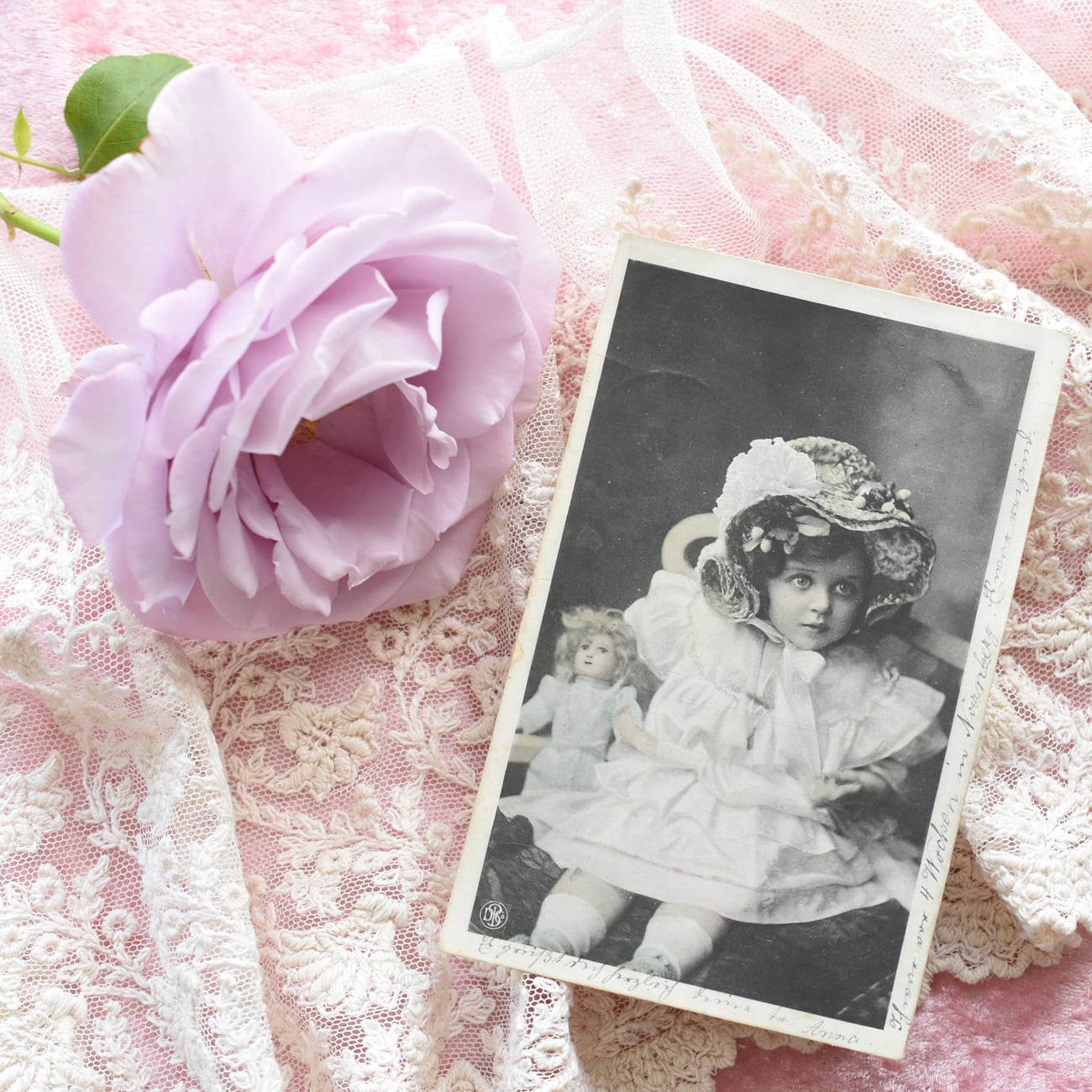 お人形のように愛らしい少女のアンティークポストカード。