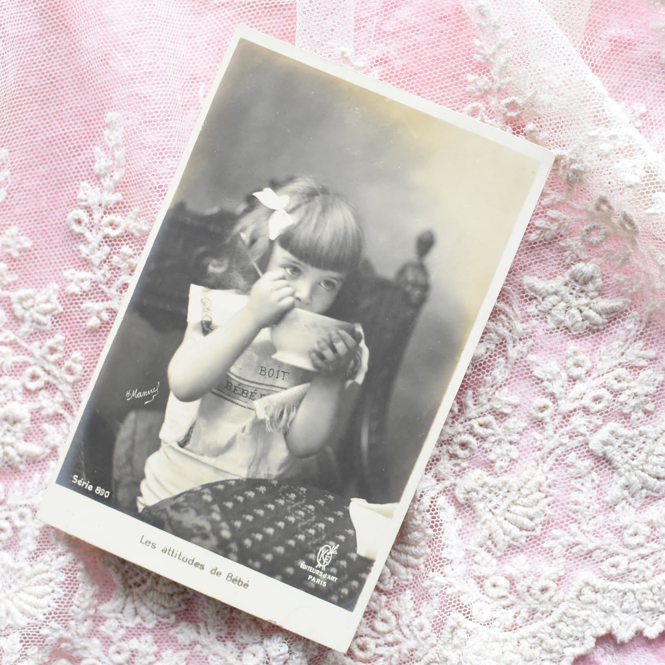 【お取り置き10/1】*Antique postcard カフェオレボウルと可愛い少女 H.Manuel P206