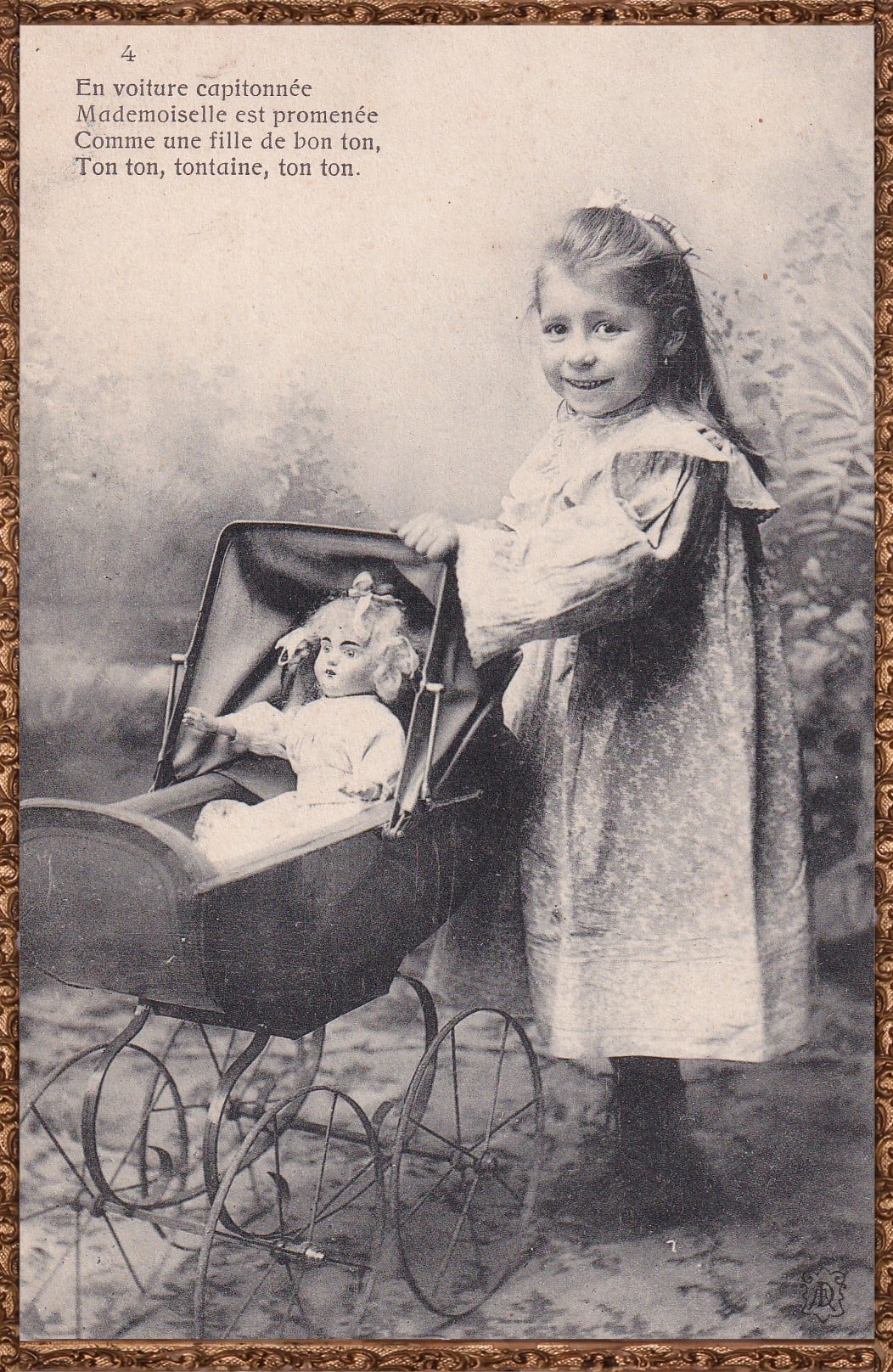 *Antique postcard お人形とお出かけの可愛い少女 serise4 France P243