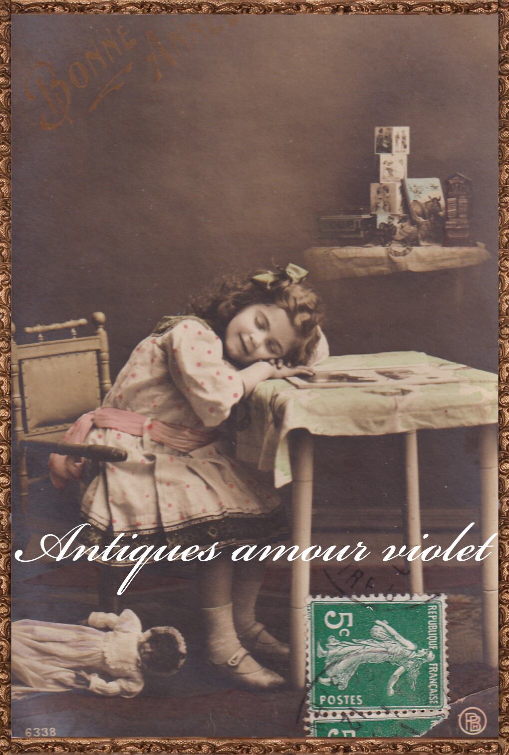 *Antique postcard 夢に堕ちる午後のうたたね FRANCE P264