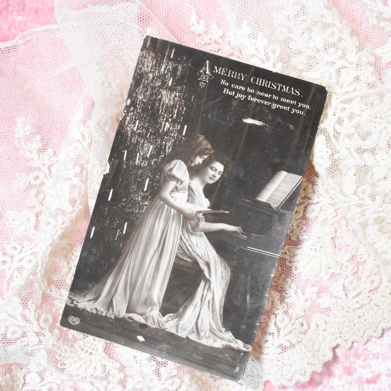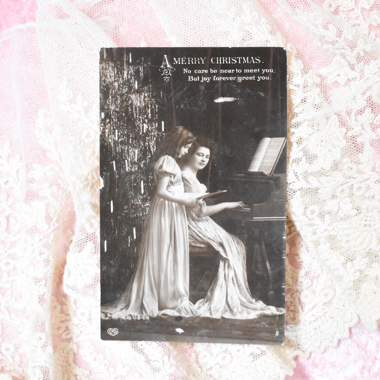 *Antique postcard クリスマスにピアノを演奏する美しい少女とママ2 1911年 Germany P266