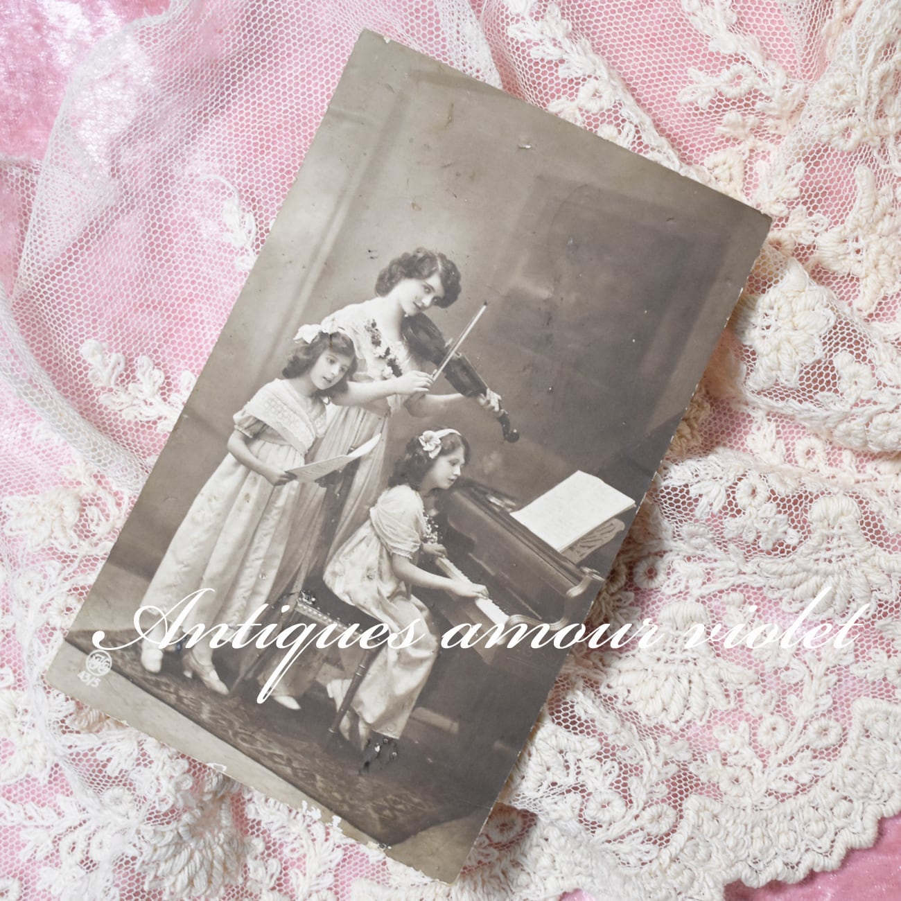 *Antique postcard お母さまと少女たちの演奏会2 FRANCE P304