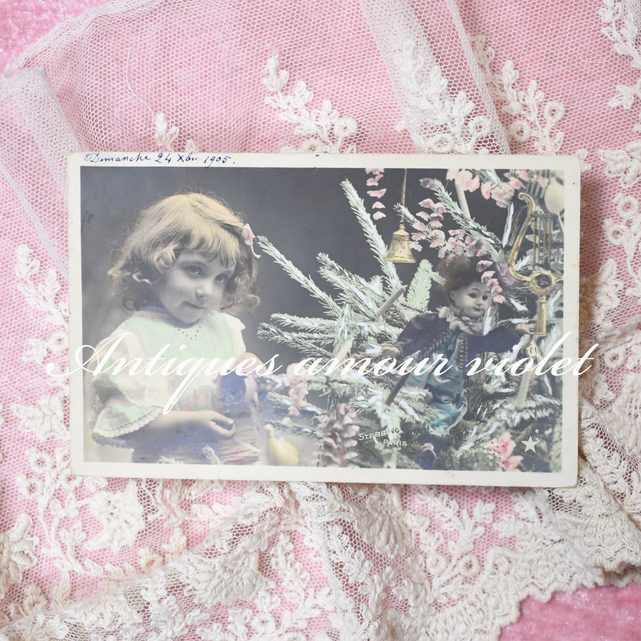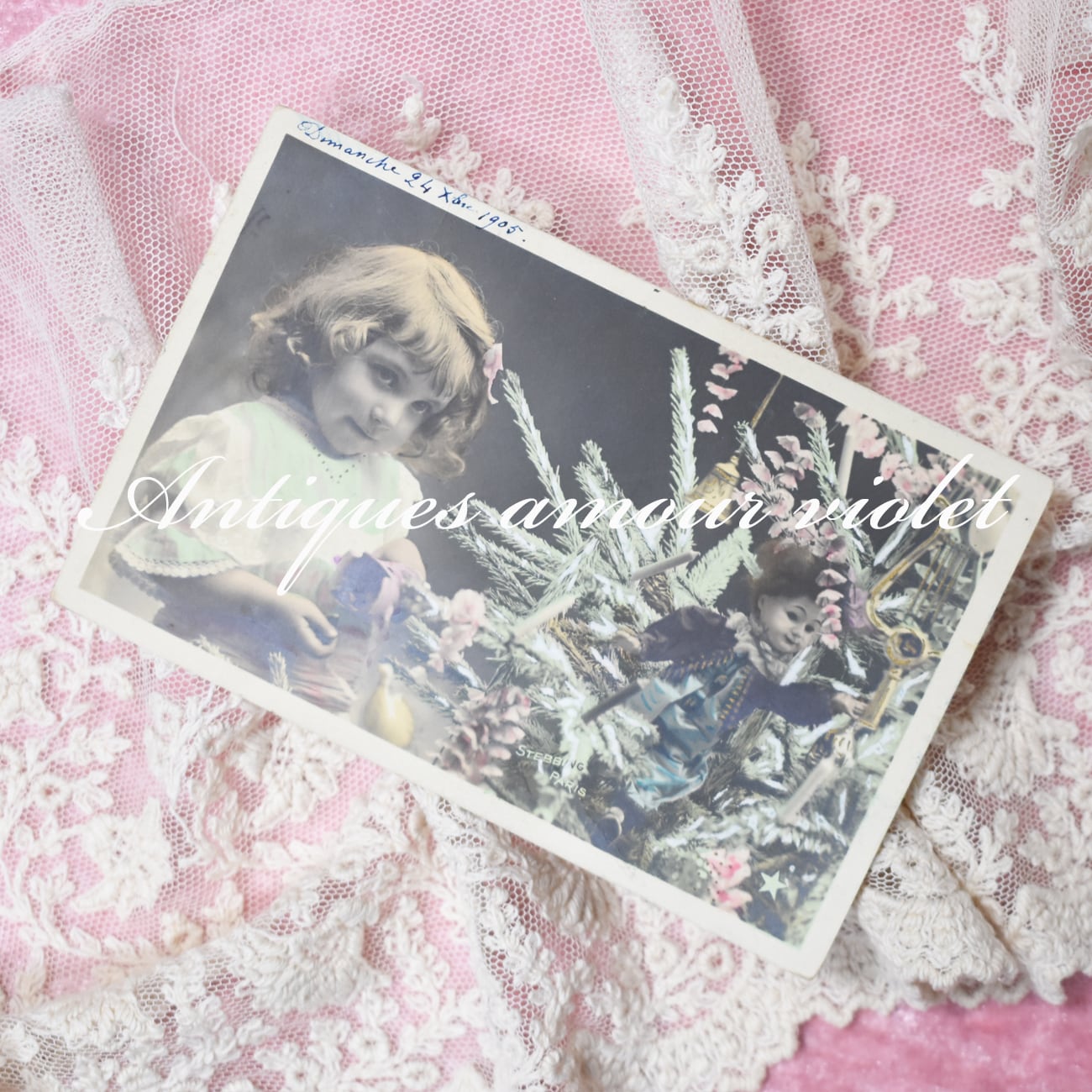 楽しいクリスマスを待ちわびる可愛いらしい少女のアンティークポストカード。