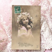 マーガレットの妖精が現れたかのような美しい少女のアンティークポストカード。